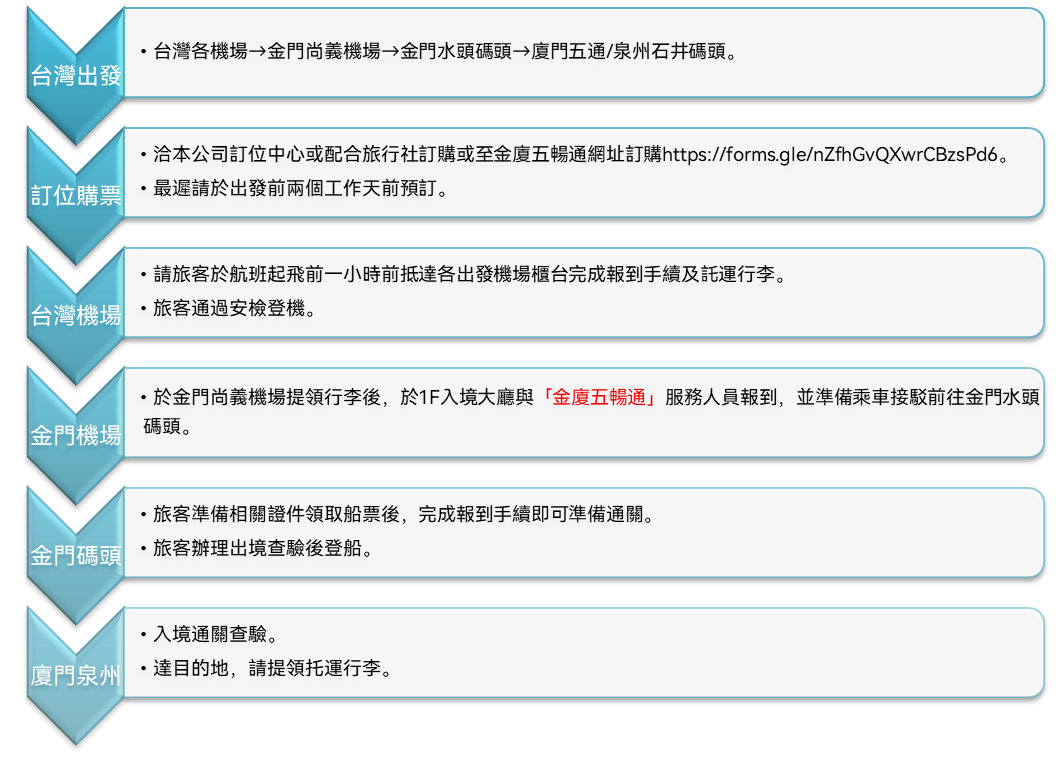 ※請於出發前兩個工作天完成報名相關手續並傳訂單給金廈五暢通服務人員。